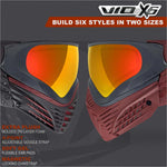 The VIO X6 is the first paintball mask to include fully customizable parts right out of the box so you can immediately build your own fit and style. Each VIO X6 includes enough components to build six different looking goggles in two different sizes. Designed for performance, comfort, and style, the VIO X6 includes the option for both a low-profile mask for optimal maneuverability or an extended mask for maximum coverage and airflow.