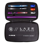 The LAZR Barrel Kit comes complete with 8 Barrel Bore Inserts, a Barrel Tip and 4 Interchangeable Accent Grips. The LAZR barrel is packaged in our custom HK Army Hard Shell Exo Barrel Case.