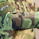 When disappearing into the landscape is your top priority, our Tango apparel has you covered. The durable, lightweight construction with a full-coverage camo pattern help you blend into your surroundings and help keep you protected . The padding is built in for extra durability and integrated where you need it most. Stretch areas make for easy mobility when crawling through brush, or sprinting to cover. With the big Velcro sleeve panels you’ll have plenty of room to show off your colors to the team whose flag you just captured.