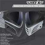The VIO X6 is the first paintball mask to include fully customizable parts right out of the box so you can immediately build your own fit and style. Each VIO X6 includes enough components to build six different looking goggles in two different sizes. Designed for performance, comfort, and style, the VIO X6 includes the option for both a low-profile mask for optimal maneuverability or an extended mask for maximum coverage and airflow.