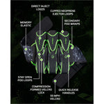 SECONDARY POD WRAPS: With today's games having multiple formats, you need a versatile harness. The New Assault Harness has been designed to be used in NXL style games as well as larger format games. To accommodate for this we have included secondary pod wraps between each pod loop, and on the outsides of the pod loops. This allows you to carry 3 pods up to 9 pods.
