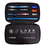 The LAZR Barrel Kit comes complete with 8 Barrel Bore Inserts, a Barrel Tip and 4 Interchangeable Accent Grips. The LAZR barrel is packaged in our custom HK Army Hard Shell Exo Barrel Case.